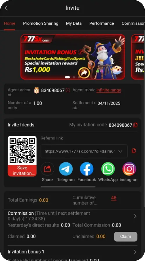 Invite your friends to join and earn special referral bonuses. 777SX Game APK also runs fun events and promotions where players can win extra coins, cashback, or gifts.